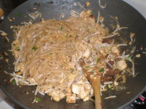 Heidi works on her masterpiece, Pad Thai.