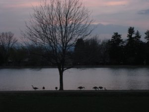 He pulled into Wash Park as the sun is going down and says, “Let’s go walk.” So we headed down towards the lake. As we got closer to the water, there were huge clouds of mosquitoes. (I’m not sure WHAT they were doing since this is Colorado, the land of no bugs.) But anyway, we quickly left the water and moved up to this open grassy area. I decided it’s a good spot for pictures, so I started taking some and he got goofy.