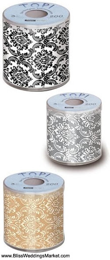It’s all in the details! Replace the toilet paper in the bathroom stalls at the reception venue with our stylish Damask Toilet Paper. A beautiful design to further add style and elegance to your wedding day! Available in Black & White, Silver, or Gold.
