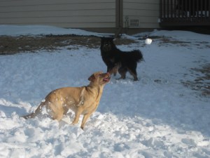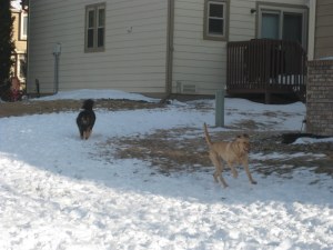 Not jealous of your snow, but those dogs sure look like they are having fun! 🙂