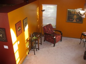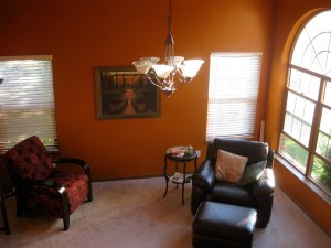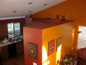 So, hopefully you can see why we LOVE it! It’s warm and comfortable and has a little Mediterranean/Tuscan feel. We’re both into bold paint colors (obviously) and this house, with its many windows, is perfect for it.