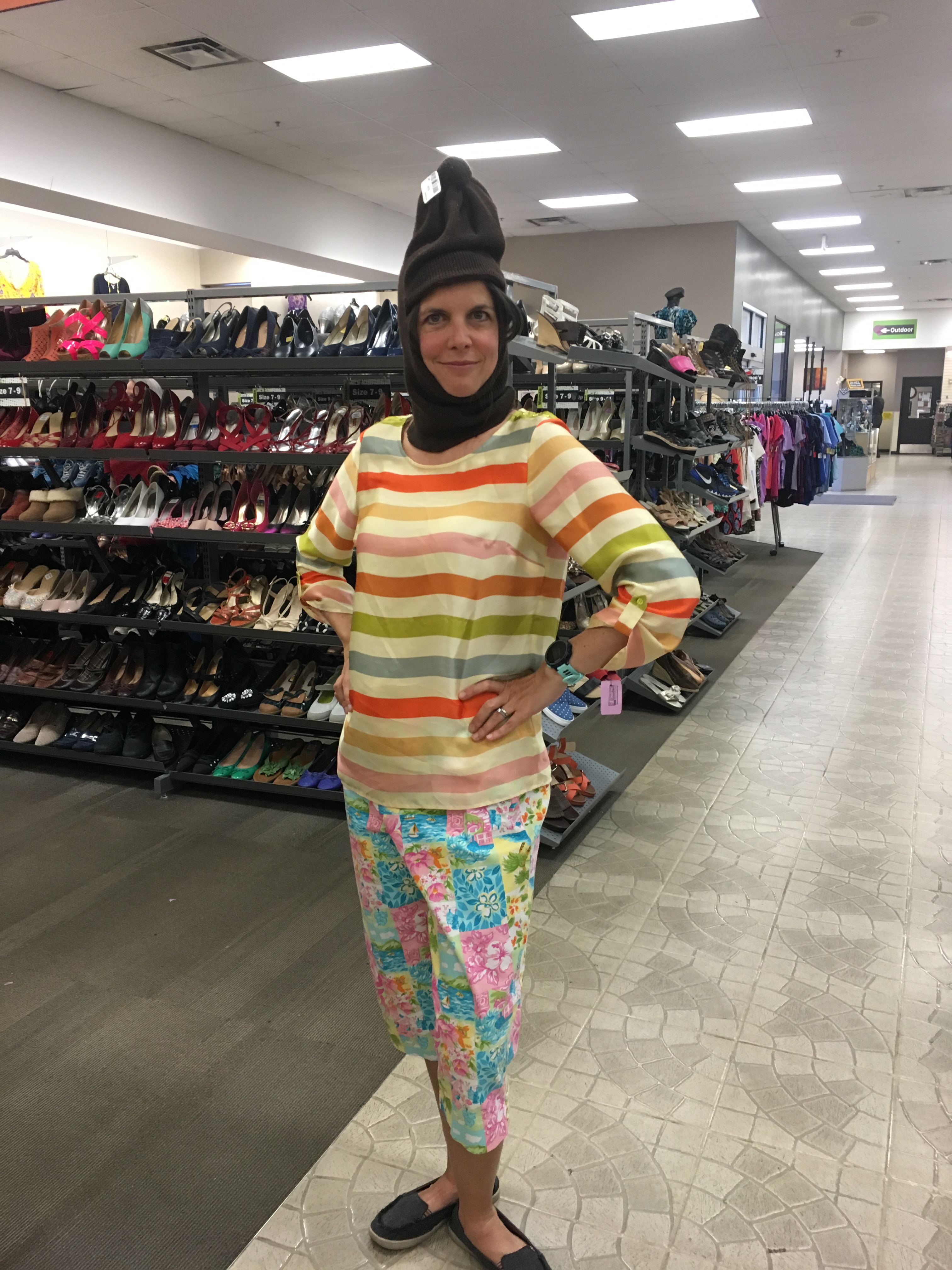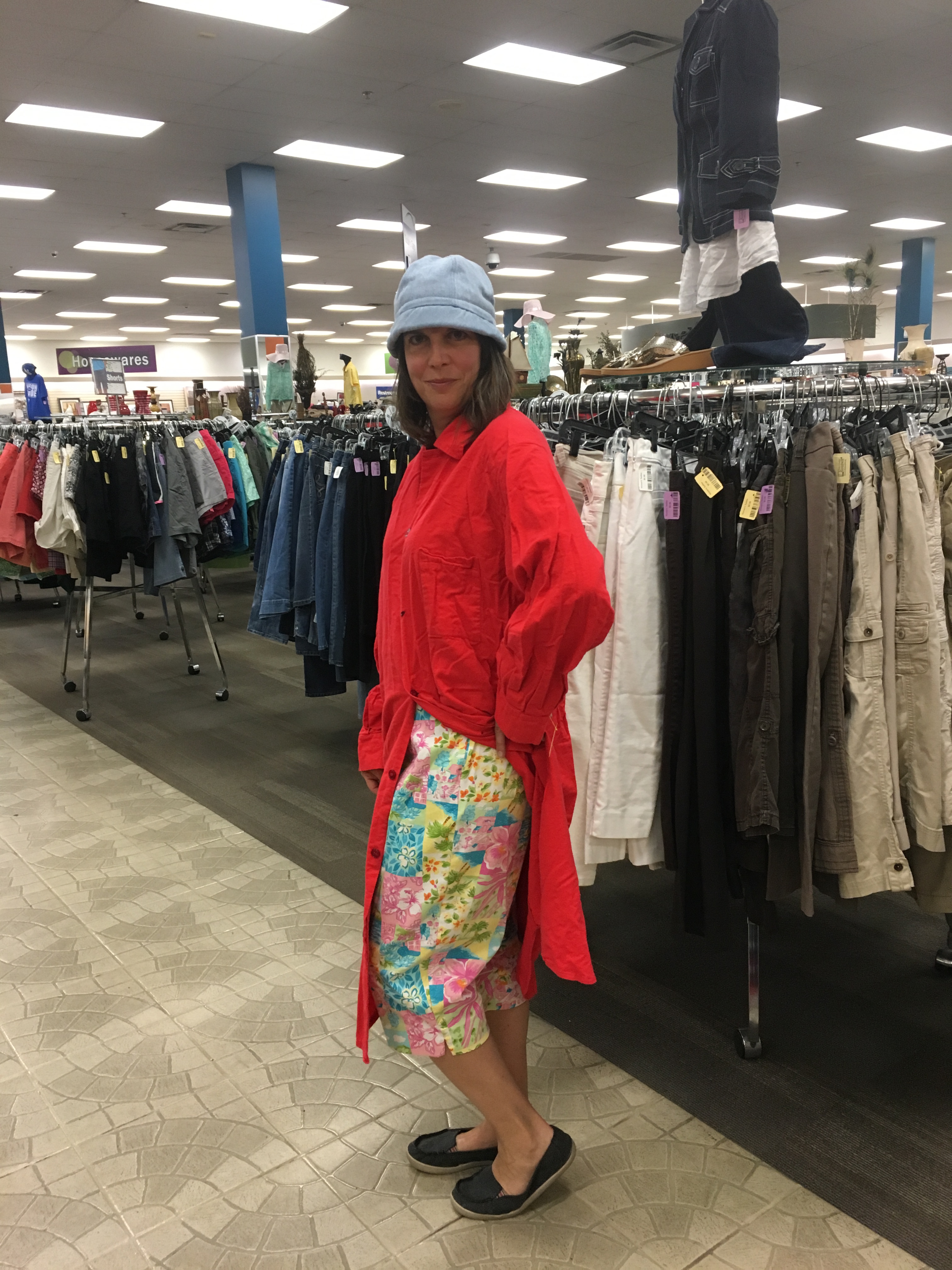 We did a mini fashion show at the Goodwill changing rooms. I went first.