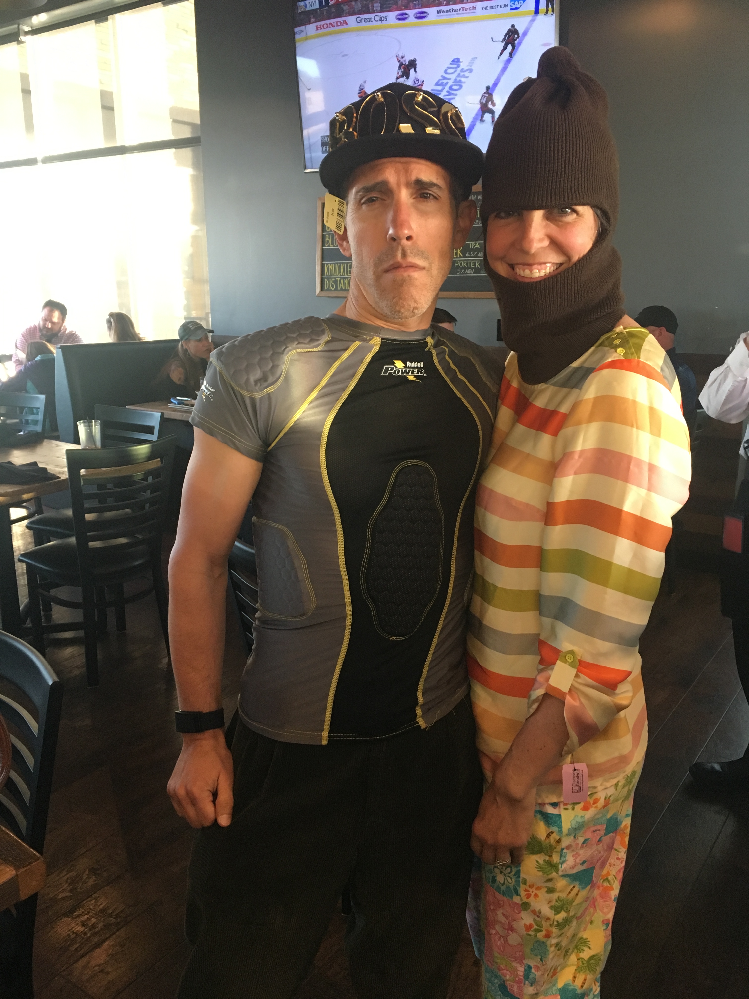 Thankfully, I was able to hide a bit in my balaclava. The first thing the hostess said to Chris was that she liked his shirt. [I snort laughed.]