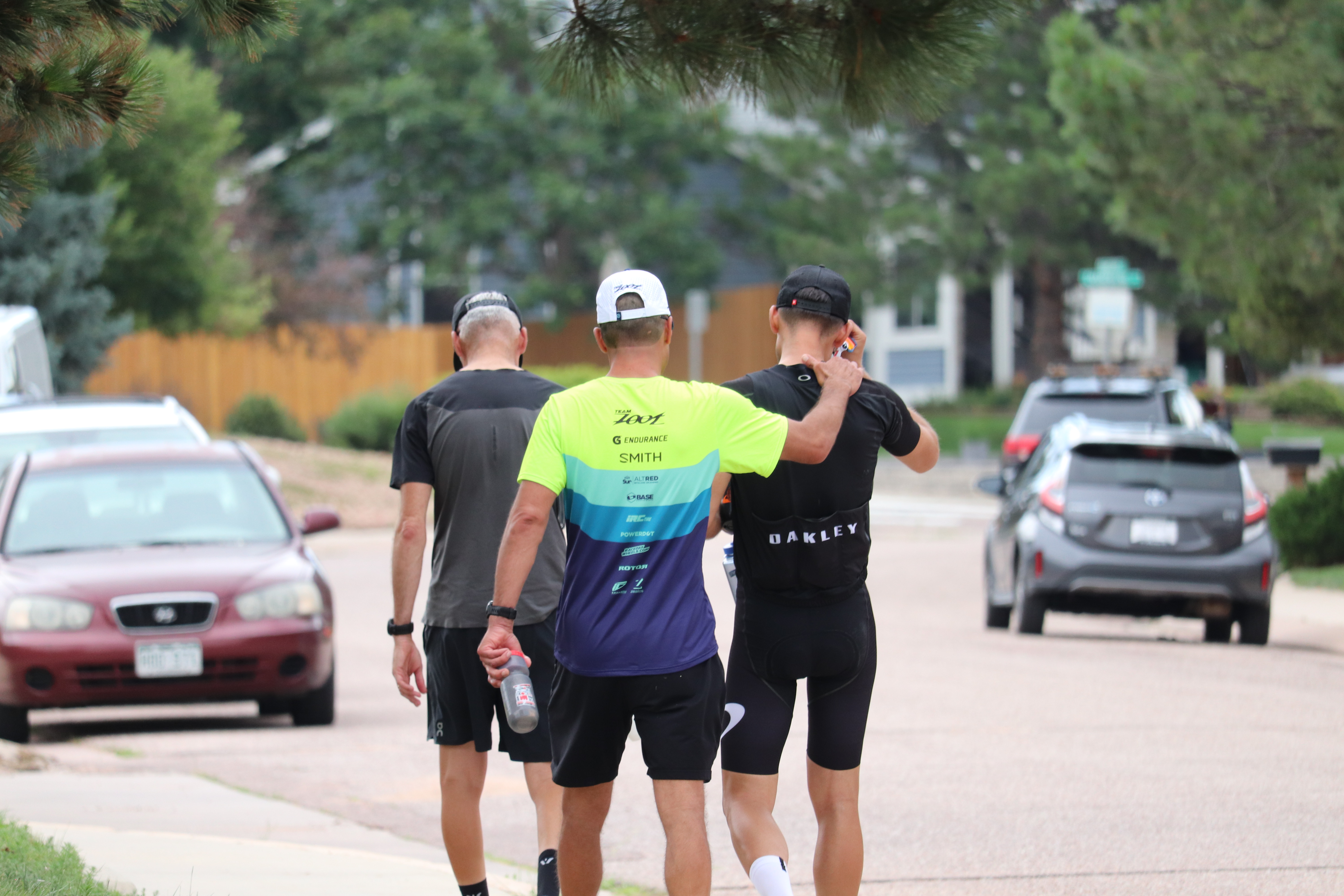 A small group of people set up at another elementary school, which is a part of the course you pass twice, once in each direction, and cheered every single rider who passed.